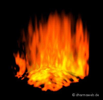 In einem Mandala soll der Feuerkranz die Unwissenheit symbolisch verbrennen und Licht in die Dunkelheit der Irrtümer bringen.