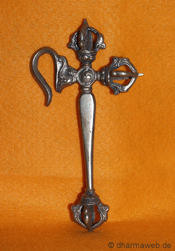 Der Stachelstock diente ursprünglich zum Antreiben von Elefanten. Er wird deshalb oft auch als Elefanten-Stachelstock bezeichnet. Im Mahayana-Buddhismus symbolisiert er den Haken, mit dem man den Zögernden an die Buddhalehre heranziehen kann.