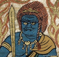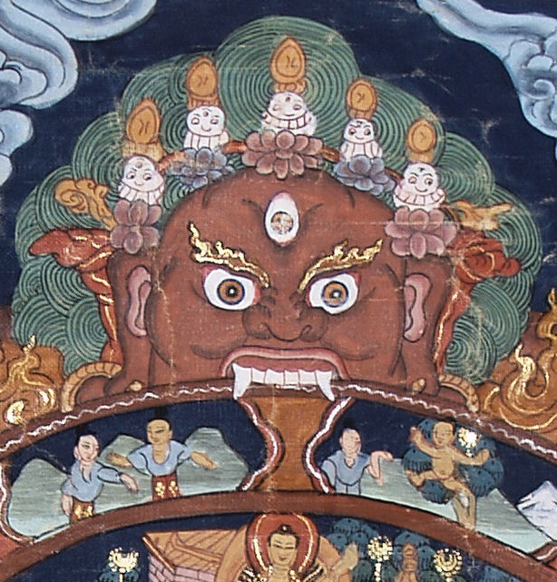 Das Lebensrad wird von grimmigen Dämon des Todes Mara umschlossen