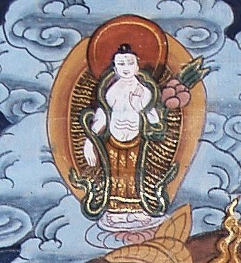 Die den fünf Sambhogakaya-Buddhas(Vairocana, Aksobhya, Rattnasambhava, Amitabhaund Amoghasiddhi) beigeordneten transzendenten Boddhisattvas (Samantabhara, Vajrapani, Ratnapani, Avalokitesvaraund Visvapani) hier am häufigsten genannt.