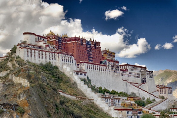 Der Potala, eine ehemalige Palastburg befindet sich nordwestlich der Altstadt Lhasas auf dem Rotberg. Erbaut wurde der Potala vor 1300 Jahren vom Tubo-König Songzain Gambo (srong btsan sgam po). Der Potala wurde durch Umwelteinflüsse und Kriege mehrfach stark beschädigt, weshalb heute nur ein Teil des Palastes mit ehemals 1000 Räumen übrig ist. Lange Zeit wurden die verbliebenen Teile des Palastes für religiöse Zeremonien oder als Versammlungsorte, Bibliotheken und Schlafbereiche genutzt.