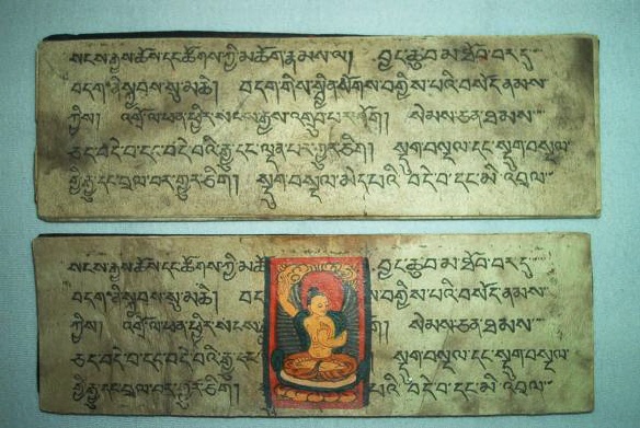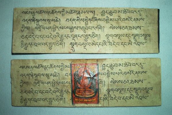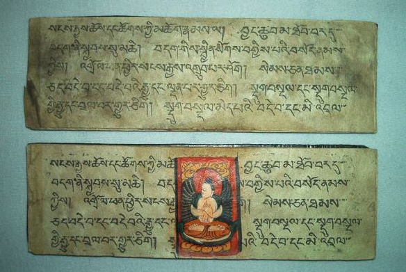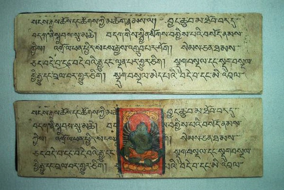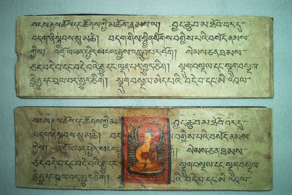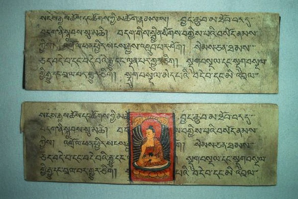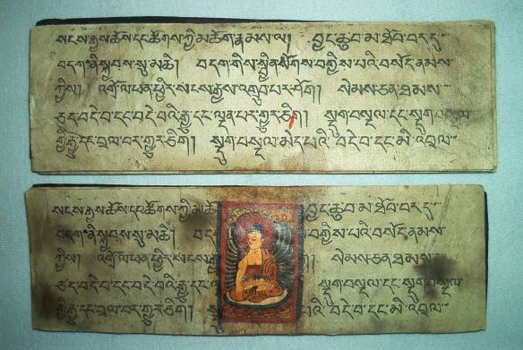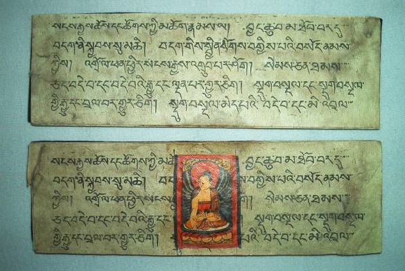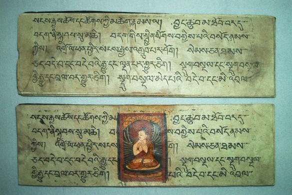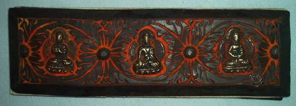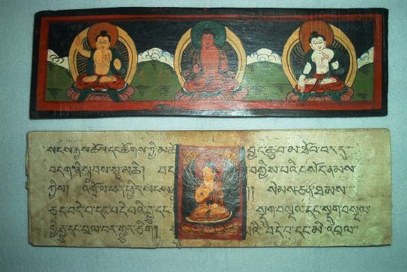 Ursprünglich alt-indische Texte, welche auf Palmblättern geschrieben wurden und zwischen zwei Holzdeckeln gelegt und mit einer Schnur umwickelt wurden. Bei tibetischen Büchern Pecha (tib. dpe-cha), welche oft im Holzdruck hergestellt werden, liegen die Seiten zwischen zwei Holzdeckeln und werden bei der Lagerung durch ein Tuch geschützt und zusammengehalten.