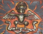 (tib: khyung.mkha' lding) wörtlich "Schlangenfresser" Mythischer König der Vögel. Eine ursprünglich aus der hinduistischen Mythologie stammende Figur, halb Mensch halb Vogel. Im tibetischen verschmolz die Mythologie mit Khading, dem "gehörnten Goldadler" der Bön-Mythologie Tibets. Der Garuda ist das Reittier Amoghasiddhi's (tib. Donyod Dupoa=Unterschütterliche Kraft), welcher zu den fünf Dhyani Buddhas gehört.