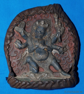 Mahakala ist ein zornvolle Gottheit und "Beschützer der buddhistischen Lehre" (Dharmapala). Es gibt 75 Erscheinungsformen Mahakalas. Mahakala gehört zu den"Acht Dharma-Schützern" (Dharmapala). Dharmapalas sind den Schriften und Erzählungen nach bezwungene Dämonen, die nach Ihrer Bändigung, das Gelübte abgelegt haben, zum Schutze des Dharmas einzutreten. Dabei haben sie ihre zornvollen Gestalten beibehalten. Freunde des Dharma haben von Ihnen nichts zu befürchten, weswegen sie trotz ihres manchmal erschreckenden Aussehens, in Ländern wie der Mongolei und Tibet sehr beliebt sind. Der berühmteste Dämonenbezwinger war Padmasambhava der im 8. Jahrhundert lebte.